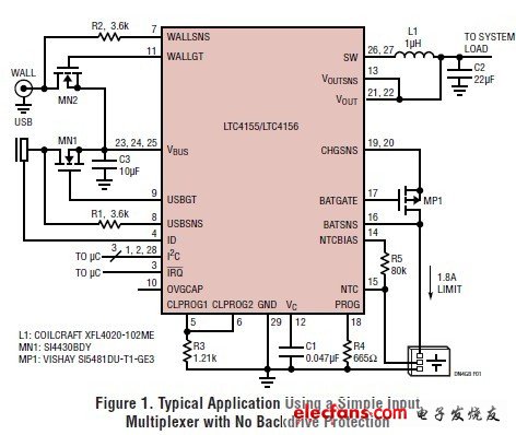 The LTC?4155 and LTC4156 are dual multiplexed-input battery chargers with PowerPath? control, featuring I2Cprogrammability and USB On-The-Go for systems suchas tablet PCs and other high power density applications.The LTC4155’s float voltage (VFLOAT) range is optimizedfor Li-Ion batteries, while the LTC4156 is optimized forlithium iron phosphate (LiFePO4)batteries, supportingsystem loads to 4A with up to 3.5A of battery charger current. I2C controls a broad range of functions and USBOn-The-Go functionality is controlled directly from the USB connector ID pin.