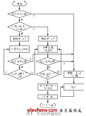 圖5 為系統軟件的程序流程圖。根據電池的端電壓決定充電器工作在何種充電狀態。