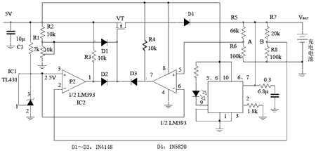 新型線性鋰離子電池充電器功能齊全、性能良好、電路簡(jiǎn)單、占印制版面積小,價(jià)格低廉,整個(gè)充電器可以在產(chǎn)品中。若采用USB端口充電,使用十分方便。