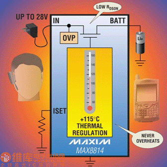 Maxim推出MAX8814首款額定28V的單輸入充電器,用于單節(jié)鋰離子(Li+)電池。器件僅需4mm2的電路板空間,通過集成MAXIM專有的溫度及恒流恒壓(CCCV)調(diào)節(jié)電路,可以避免快速充電過程中出現(xiàn)過熱,簡化了硬件設(shè)計。MAX8814具有過壓保護電路,可以承受高達28V的輸入瞬態(tài)變化,性能可靠。高可靠性和集成度使該小型充電器成為蜂窩電話、智能手機、USB應(yīng)用、藍牙器件以及其它手持設(shè)備的理想選擇,這些應(yīng)用中主要關(guān)心充電器的安全性、充電速度和尺寸等特性。