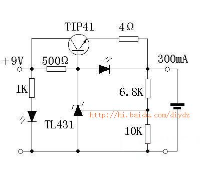 自制一個(gè)簡(jiǎn)單實(shí)用的鋰電池充電器改變圖中4歐的電阻可以改變充電電流,D1是電源指示,D2是充電指示兼限流。調(diào)試時(shí)6.8K電阻用一10K微調(diào)電阻代換,用數(shù)字表監(jiān)視電池電壓到4.2V時(shí),調(diào)10K微調(diào)電阻到6.8K即可。