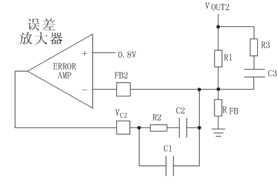IC引腳FB2是誤差放大器反相輸入端,引腳VC2是誤差放大器輸出端。誤差放大器單位增益頻率fUG可表示為: