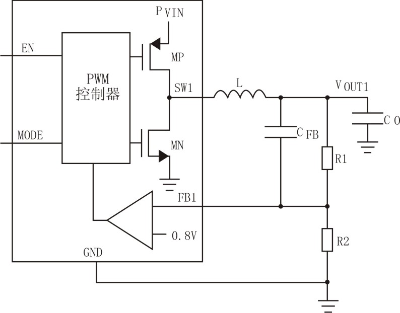 當輸入電壓遠高于輸出電壓時,穩壓器工作在降壓模式;當輸入電壓遠低于輸出電壓時,穩壓器則在升壓模式操作。