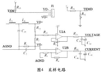 該系統(tǒng)的檢測電路主要由電壓檢測,電流檢測和溫度檢測構(gòu)成。采樣電路如圖3所示。