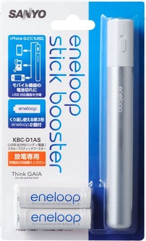 這款型號為KBC-D1 AS的圓柱型充電器,里面可放兩顆隨包裝附上的Eneloop 3號電池(HR-3UTGA),電池充電器一端設(shè)有USB插槽,可透過連接線幫iPhone、iPod、PSP、手機或其它可透過USB充電的3C裝置進(jìn)行充電。由於充電器里設(shè)置了電流控制器,對於iPhone這種需要大電流充電的機器也不用擔(dān)心。