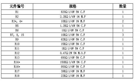 注:CF=碳膜電阻;MF=金屬膜電阻;M.O.F=金屬氧化膜電阻