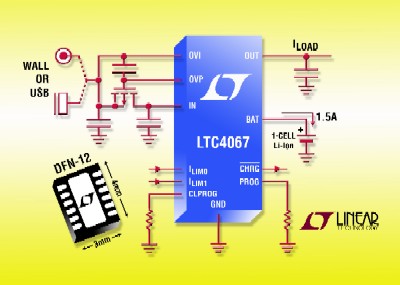 LTC4067采用纖巧、扁平(0.75mm)12引腳4mmx3mmDFN封裝,在-40℃至85℃的溫度范圍內(nèi)保證工作。以1,000片為單位批量購買,每片起價為1.70美元。