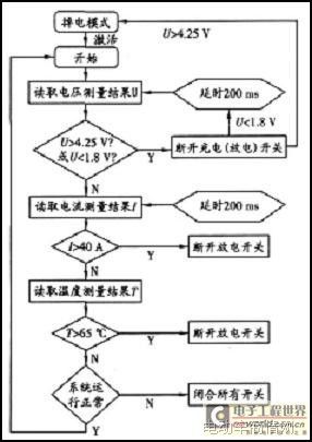 在電池組空載的時候,系統進入掉電模式,以使功耗降至最低;當電池組接入負載或對電池組充電時,單片機被激活,由低功耗掉電模式轉入正常工作模式,并持續運作。 整個程序的流程如圖6所示。