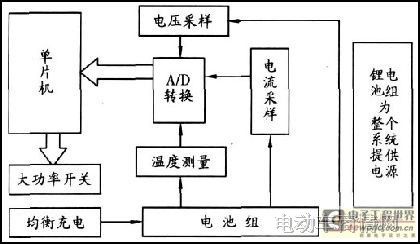 電池組電壓、電流、溫度等信息通過電壓采樣、電流采樣和溫度測量電路,加到信號采集部分的A /D輸入端。 A /D模塊將輸入的模擬信號轉換為數字信號,并傳輸給單片機。 單片機作為數據處理和控制的核心,一方面實時監控電池組的各項性能指標和狀態,一方面根據這些狀態參數控制驅動大功率開關。 由于使用了單片機,使系統具有很大的靈活性,便于實現各種復雜控制,從而能方便地對系統進行功能擴展和性能改進。