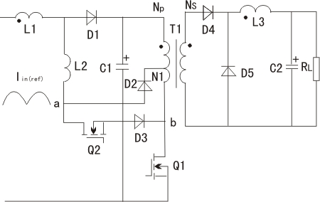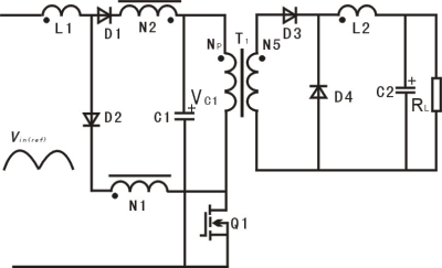 圖5 帶有源箱位和軟開關的單級隔離式PFC變換器