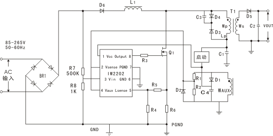 圖7 基于數字控制器iw2202的單級PFC變換器