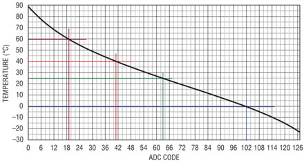 圖3:7位熱敏電阻器ADC顯示LTC4155的預置溫度跳變點