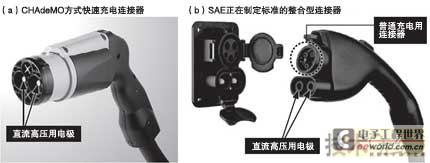 而歐美目前采用使普通充電和快速充電連接器一體化的“整合型連接器”的可能性在提高。2011年8月,美國國際汽車工程師學會(SAE International)與電氣和電子工程師協會(IEEE)宣布,雙方將合作在2012年第一季度之前制定相關標準。并且,美國福特汽車(Ford Motor)、通用汽車(General Motors)、德國奧迪(Audi)、寶馬(BMW)、戴姆勒(Daimler)、保時捷(Porsche)以及大眾(Volkswagen)7家公司于2011年10月宣布,將從2012年中期開始向市場投放可利用整合型連接器的EV及插電式混合動力車(PHEV)。