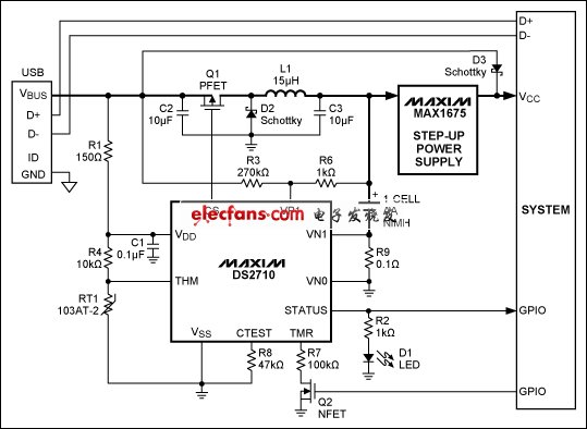 圖1. USB供電的單節NiMH電池開關模式充電器