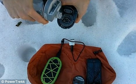 方便野外使用:一位使用者正在雪地中注水進入設備發電