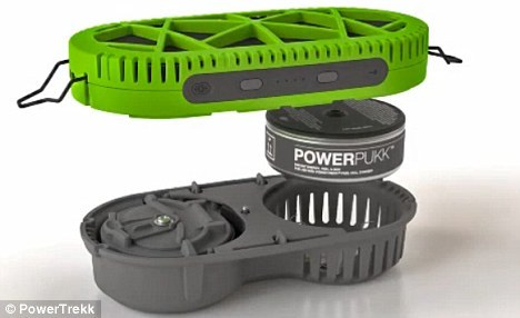 這款名為PowerTrekk的充電器目前正在美國拉斯維加斯舉行的國際消費電子展(CES)上亮相。其操作過程非??旖莺喴祝和斜P里倒入一湯匙水,然后將一個小的圓形容器放在托盤上,合上蓋子,充電開始了。
