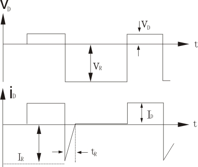 其中正向?qū)娏鱅D較大,但正向?qū)▔航礦D約為0.6~0.7V,tD為正向?qū)〞r(shí)間。